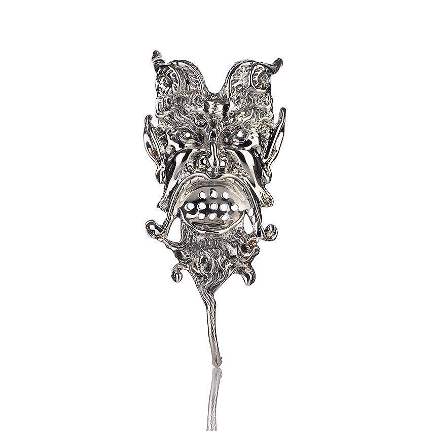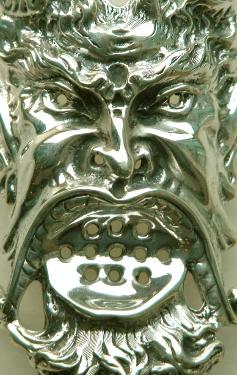 A sterling silver grille in an outstandingly detailed shape of a human face.