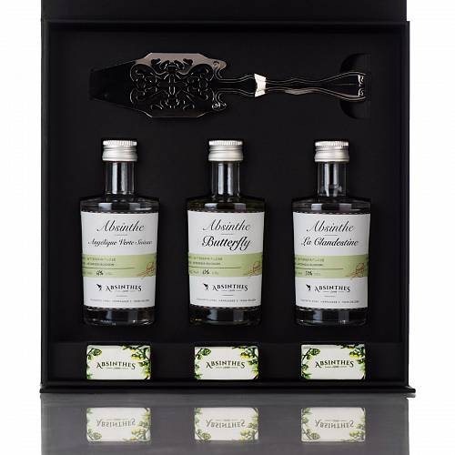 Sampler sets are the way to go! They're the perfect way to try several absinthes before investing in a full bottle. The packaging is elegant, though it would be perfect if the spoon was actually affixed as depicted instead of left loose. No matter, though--this is an excellent selection. My favorite is La Clandestine...but it's up to you (or the lucky recipient if it's a gift) to choose his/hers.